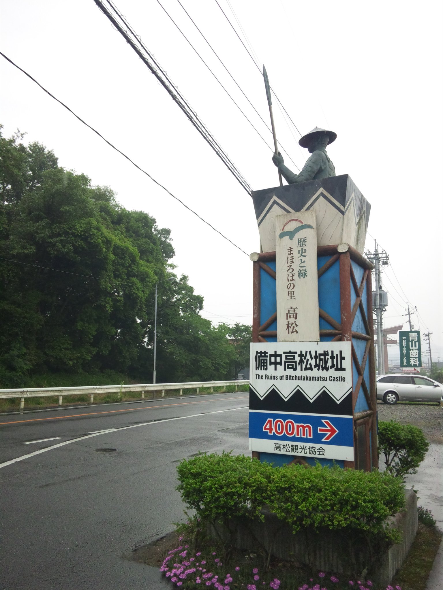 雨です。かなり降ってて、水攻め当時の雰囲気を感じます。