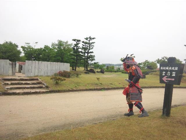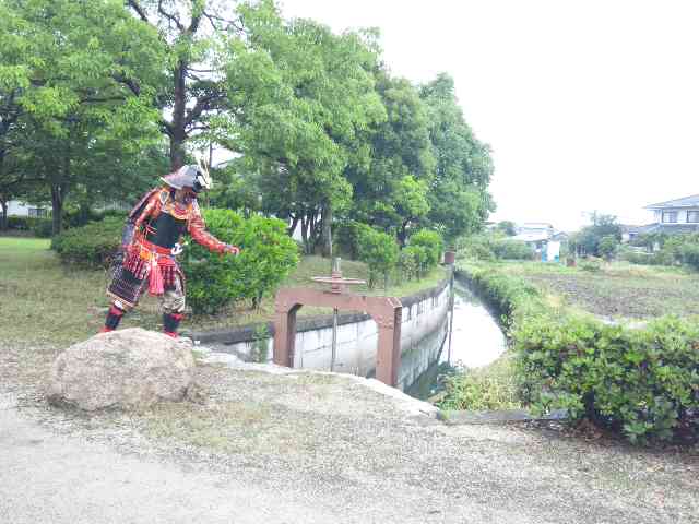 水の流れを見守る鎧武者。