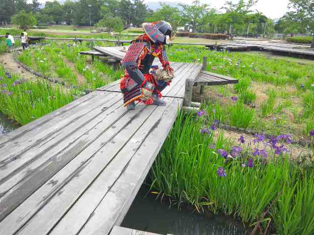 木道をゆく鎧武者。