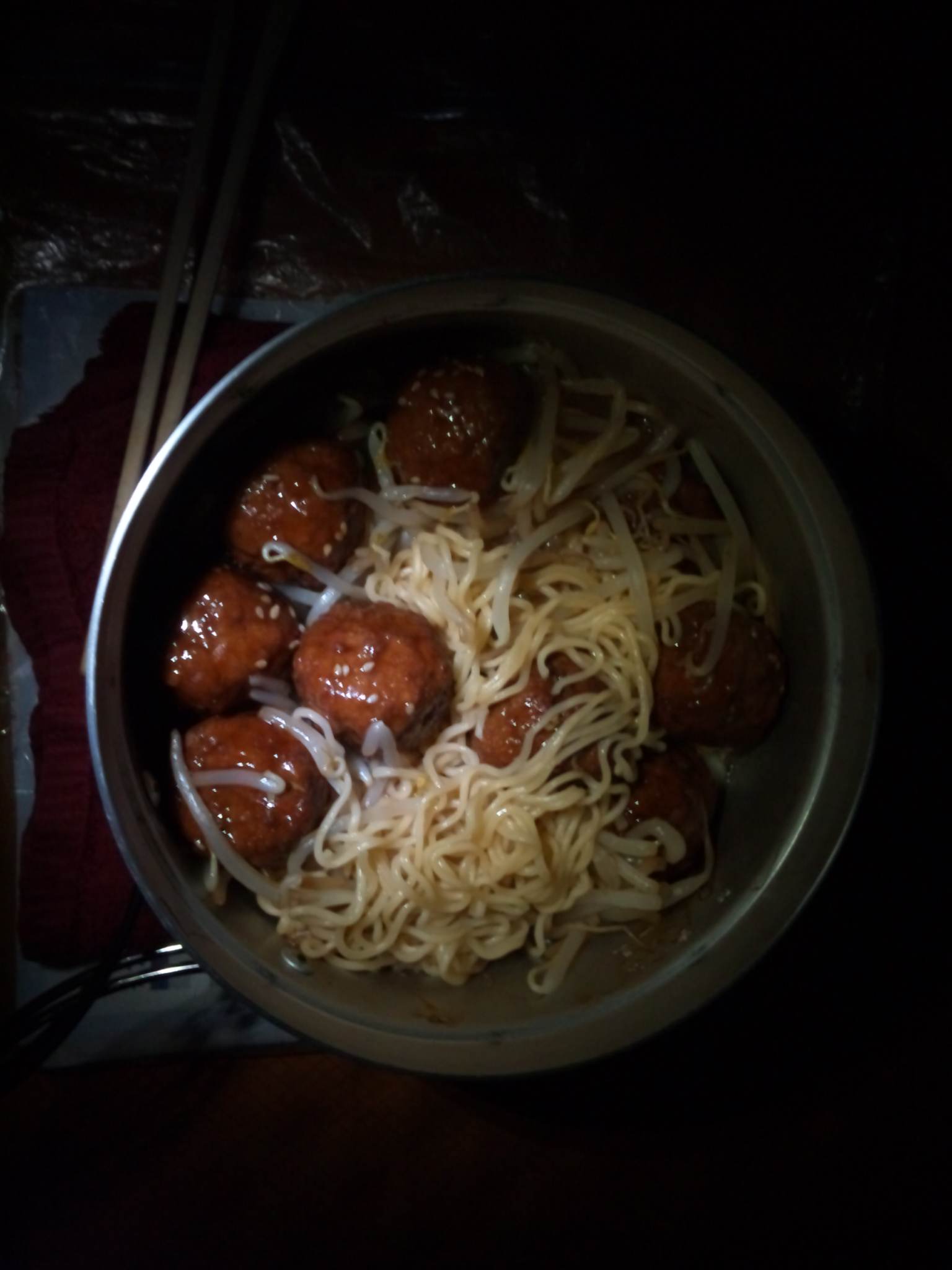 もやし肉団子ラーメンを作り食う。