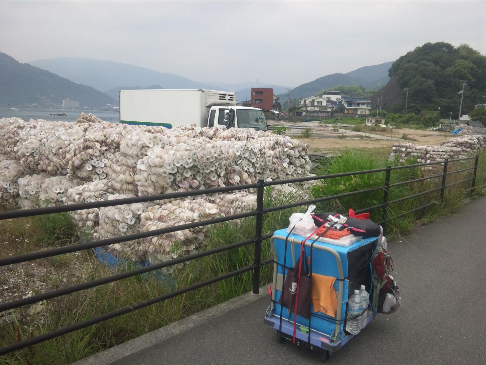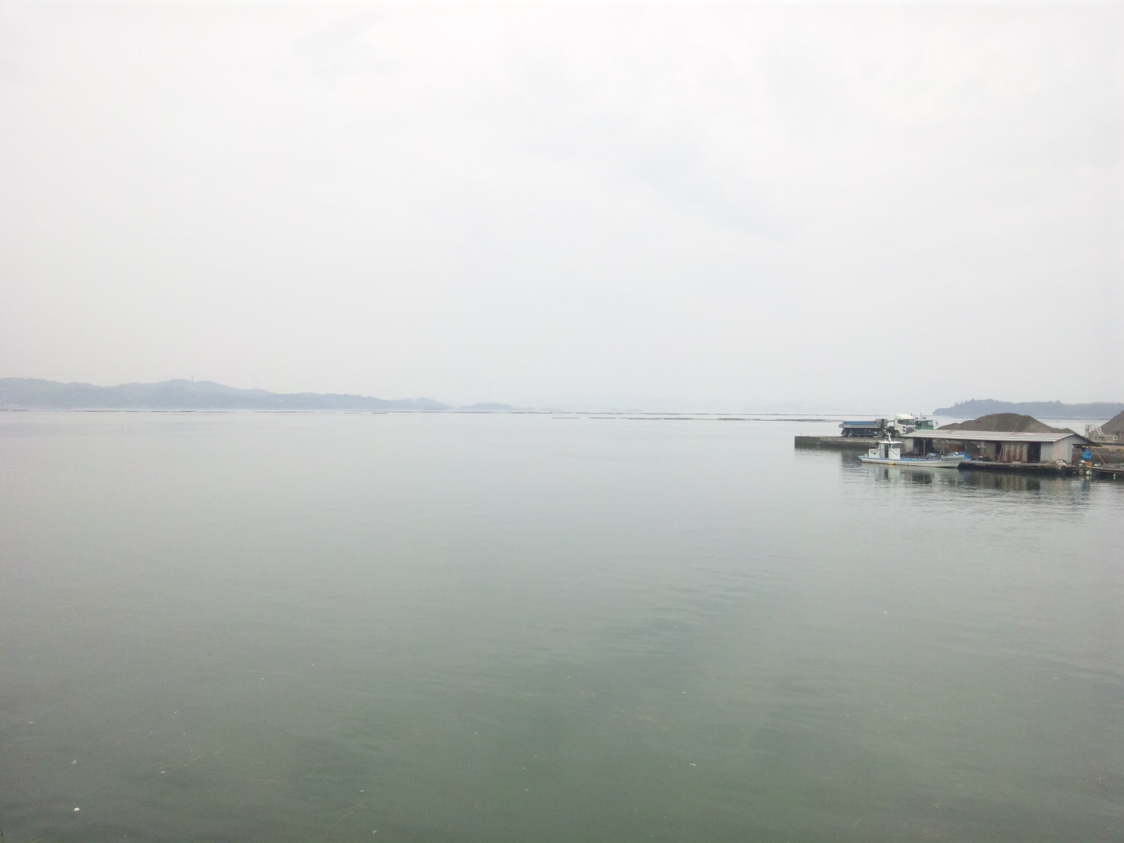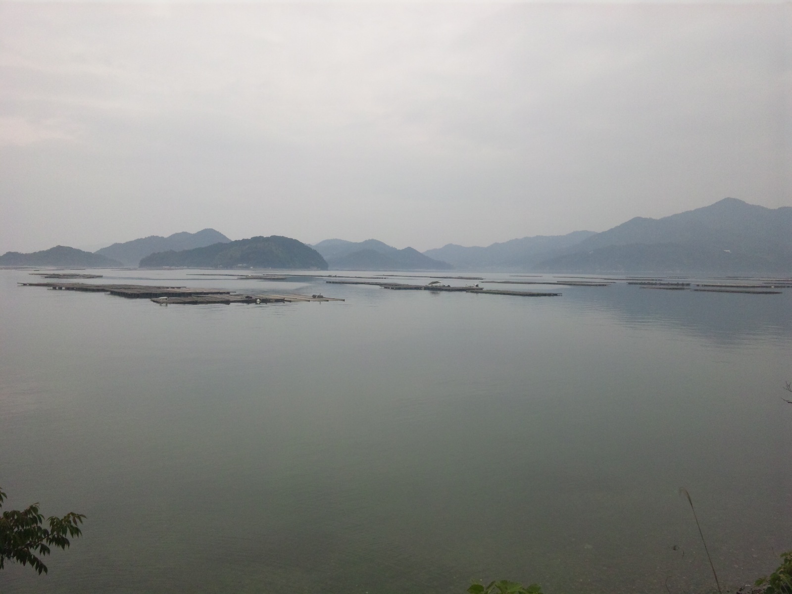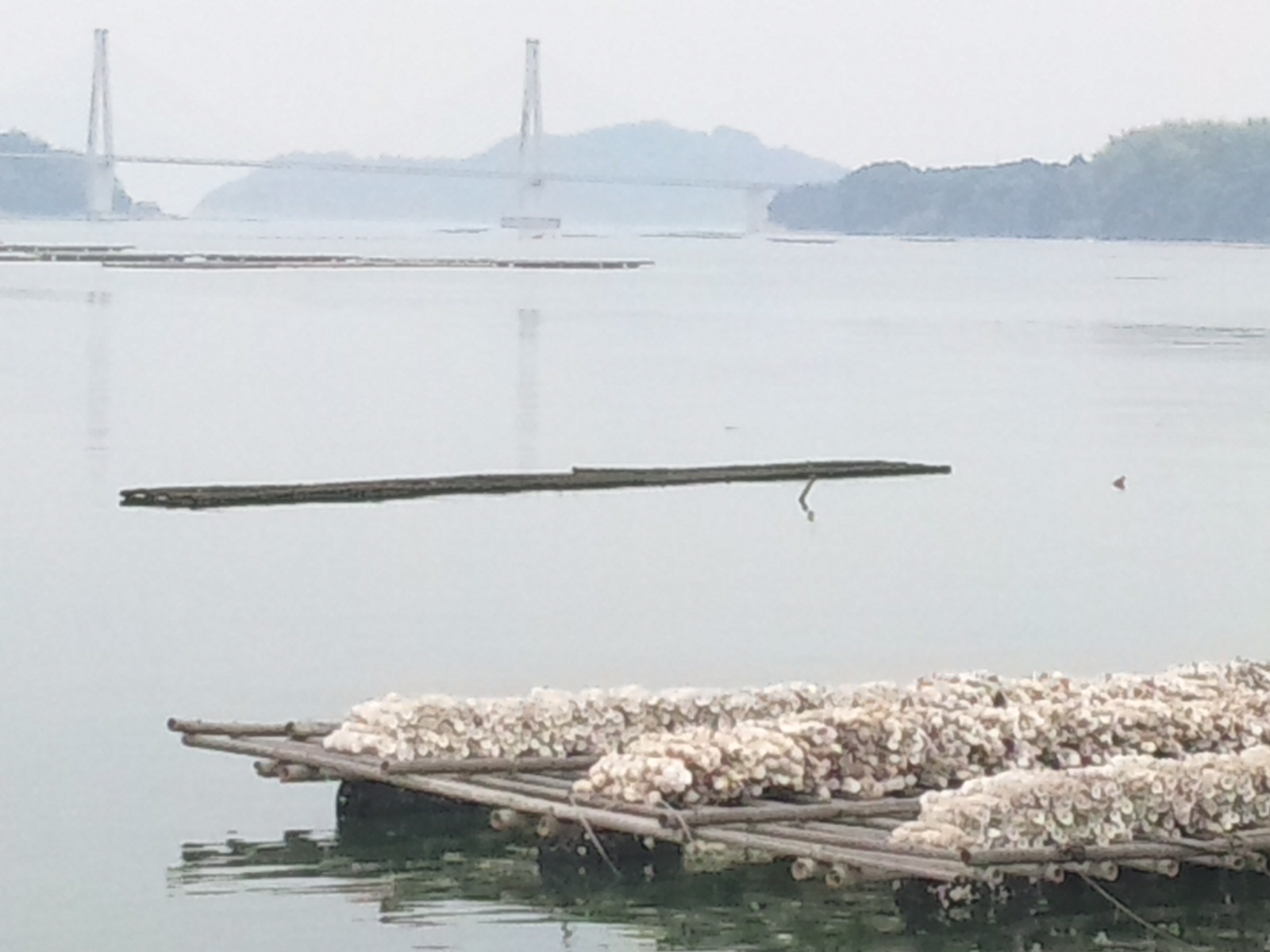 カキの養殖筏が景色を盛り立てますが