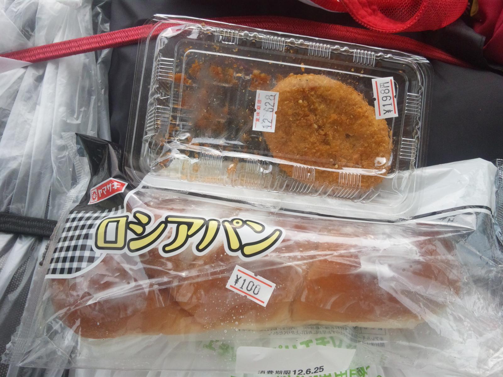 パンとコロッケで補給します。