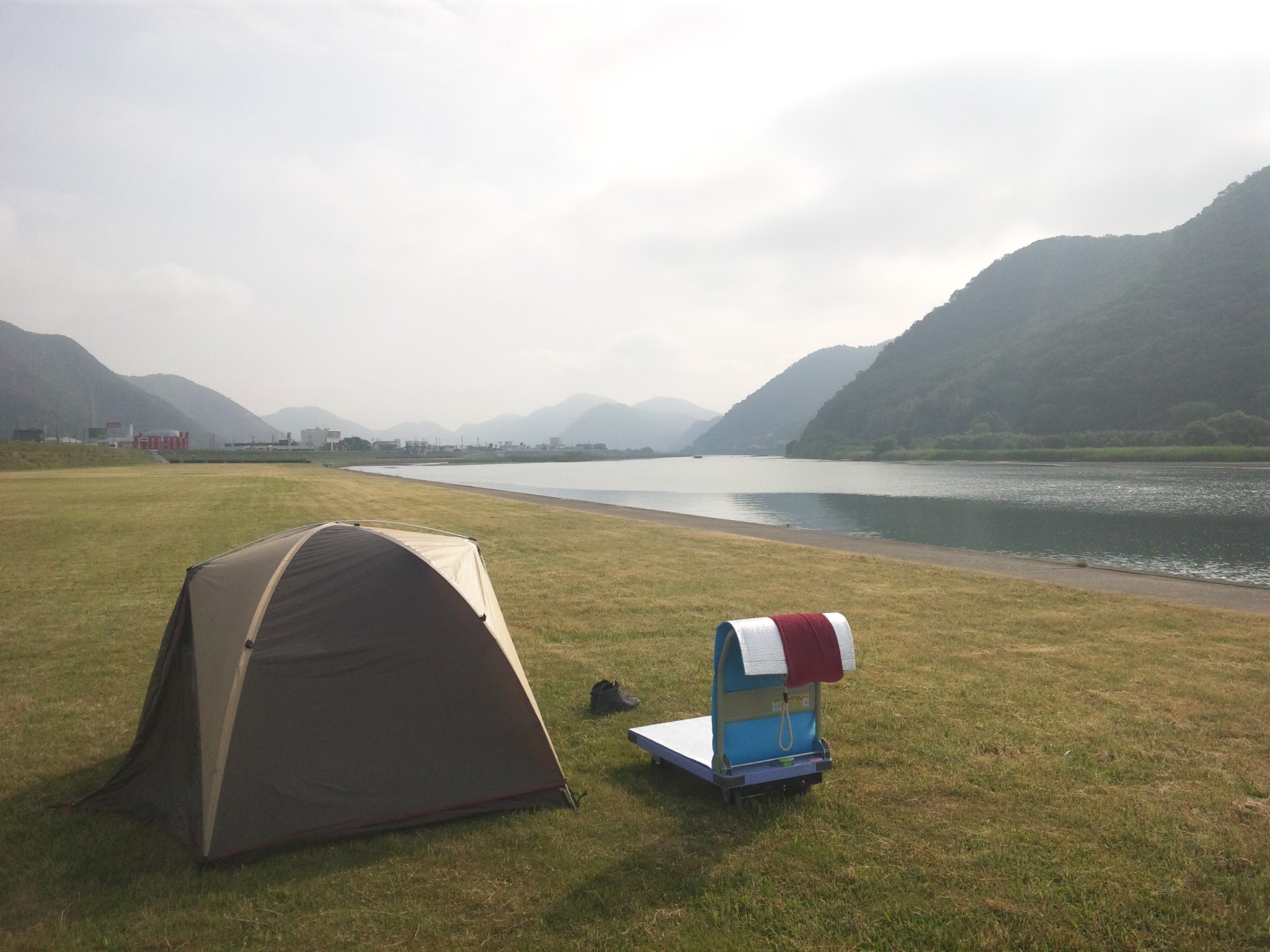 赤穂の千種川河川敷でキャンプ。
